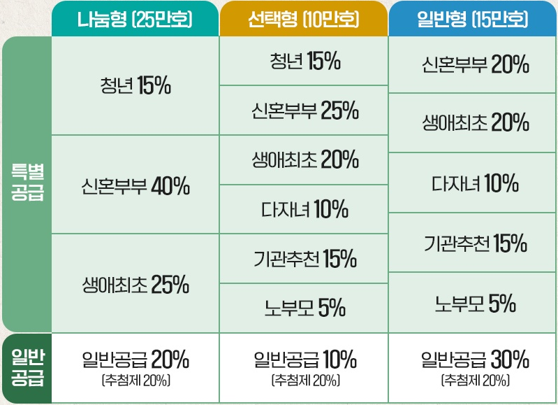 - 4050세대 등 주택구입 대기 수요를 고려해 일반 공급 물량을 15%→30%