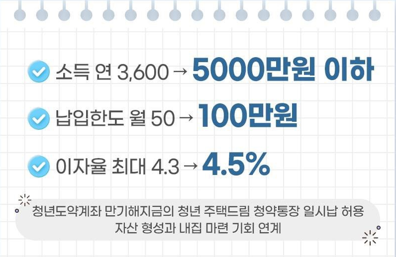 현행 청년 우대형 청약 통장 대비 가입 조건 완화